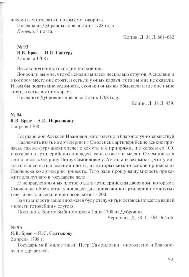 Я.В. Брюс- П. С. Салтыкову