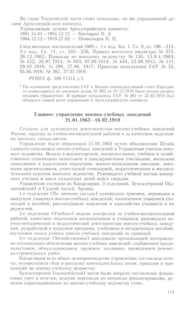 тельными курсами военного ведомства. Руководило учебной частью юнкер