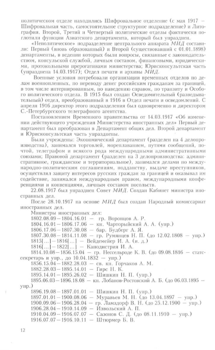 Неполнтическое >> надразделение центрального аннарата МИД состав н