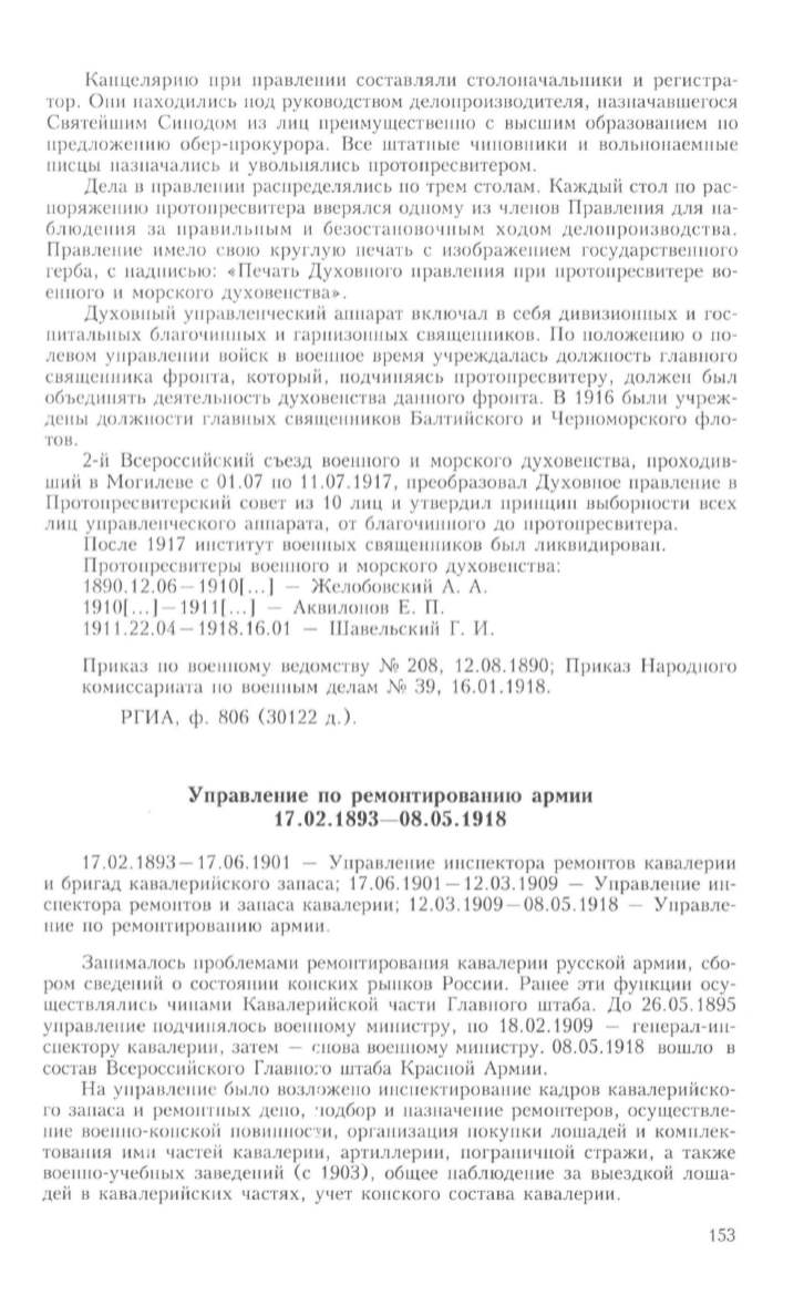 шпальных благочинных и гарнизонных священников. По наложению о по