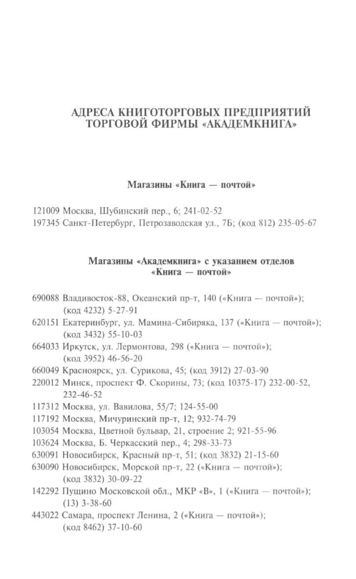 АДРЕСА КНИГОТОРГОВЫХ ПРЕДПРИЯТИЙ