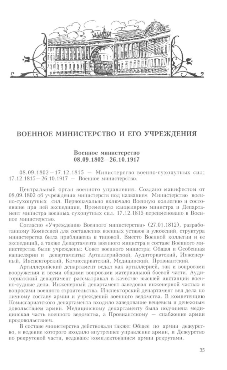ВОЕННОЕ МИНИСТЕРСТВО И ЕГО УЧРЕЖДЕНИЯ