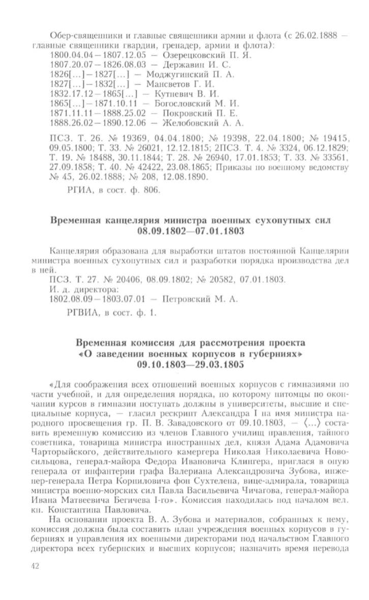 глав ные священники гвардии, гренадер, армин и флота):