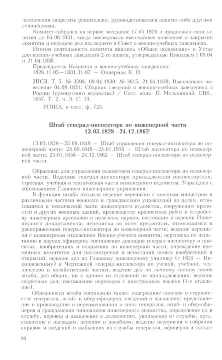 таниш н науках офицеров; составление докладов генерал-иненектару о про