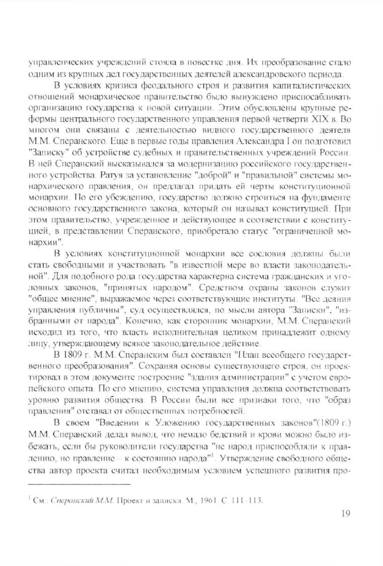 В ней Сперанский высказыtJа:1ся за \Юi tСрllизанию российского •·осу;щрствен