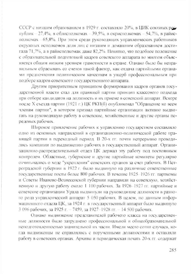 nочти неnрерывно nроводи_тис ь ю.J~1ШШИИ по вьщвижению рабочих в государственный аппарат .