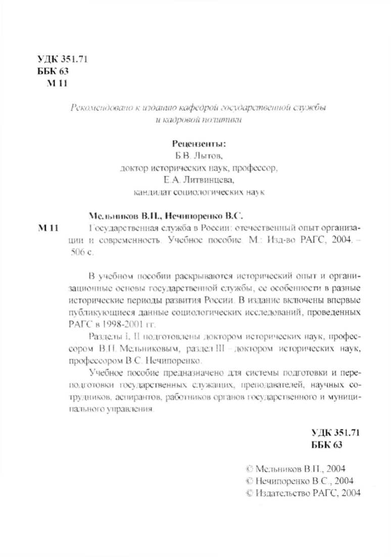 1 ·осу.1арствснная с:rужба в Росси н : отсчсствсшtы\t опыт организа-