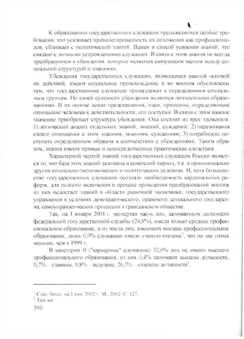 Харапсрной чертой знаний государствснных служащих России яв.lЯет