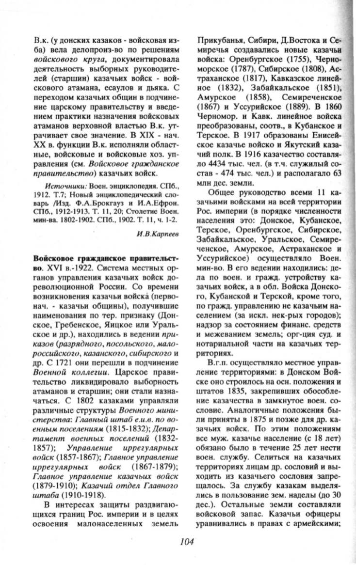 ние казачества в замкнутое воен. со