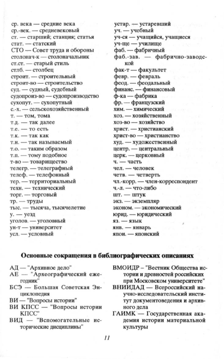 Основные сокращения в библиографических описаниях