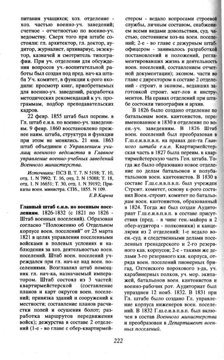 поселений. Штаб воен. поселений уч