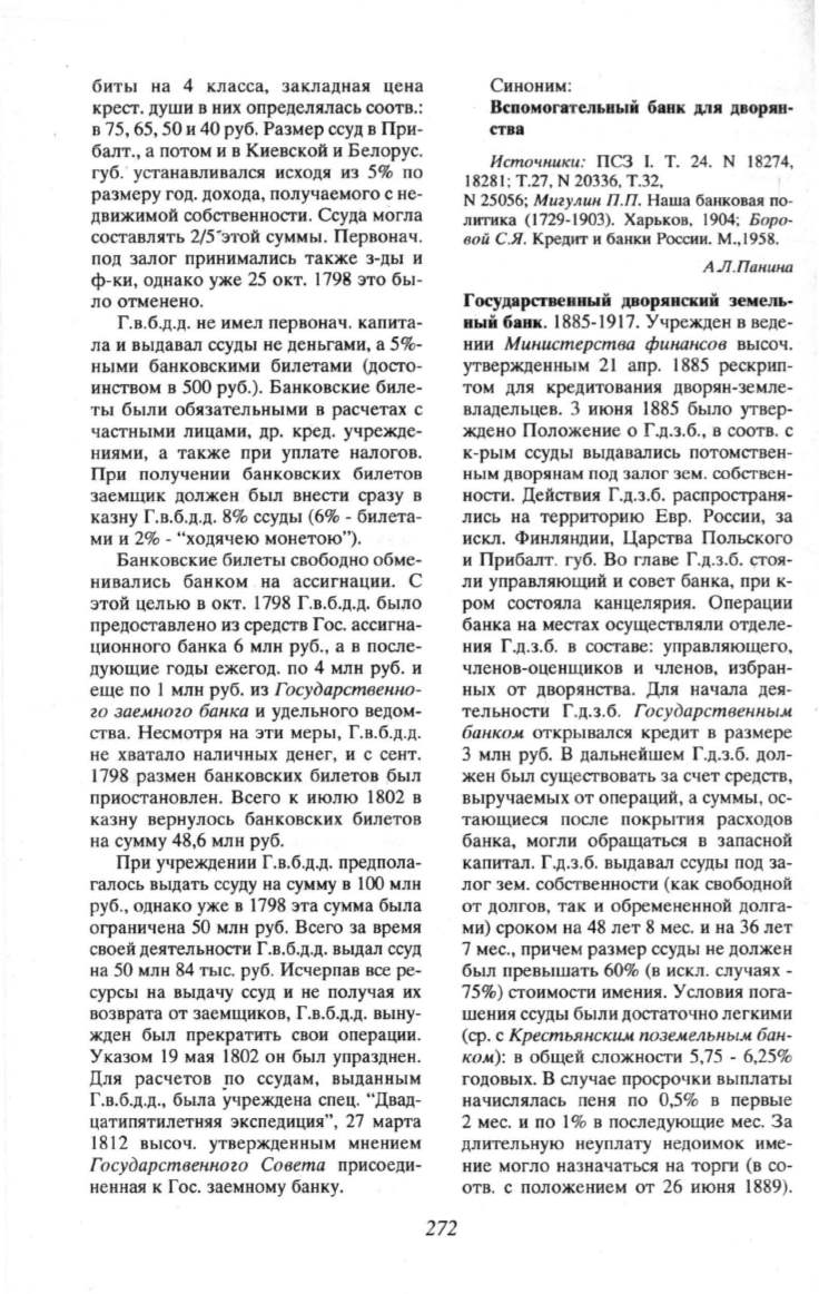 ным дворянам под залог зем. собствен