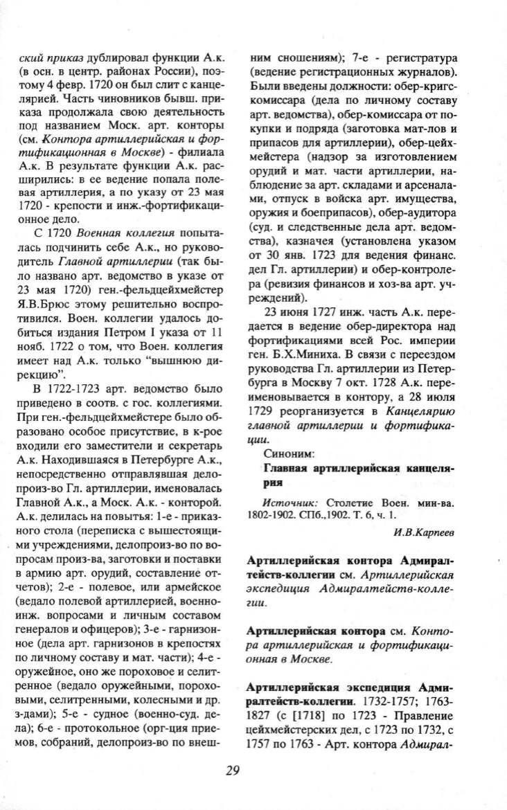 (см. Контора артиллерийская и фор