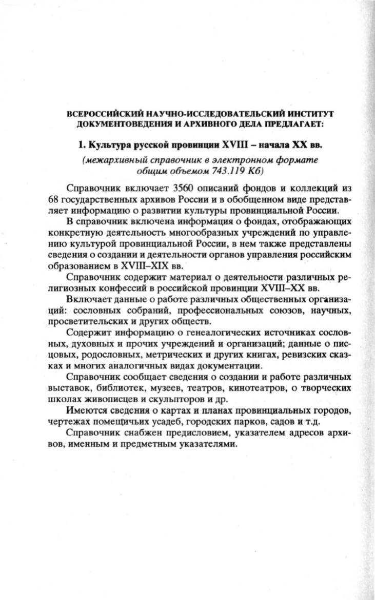 ляет информацию о развитии культуры провинциальной России.
