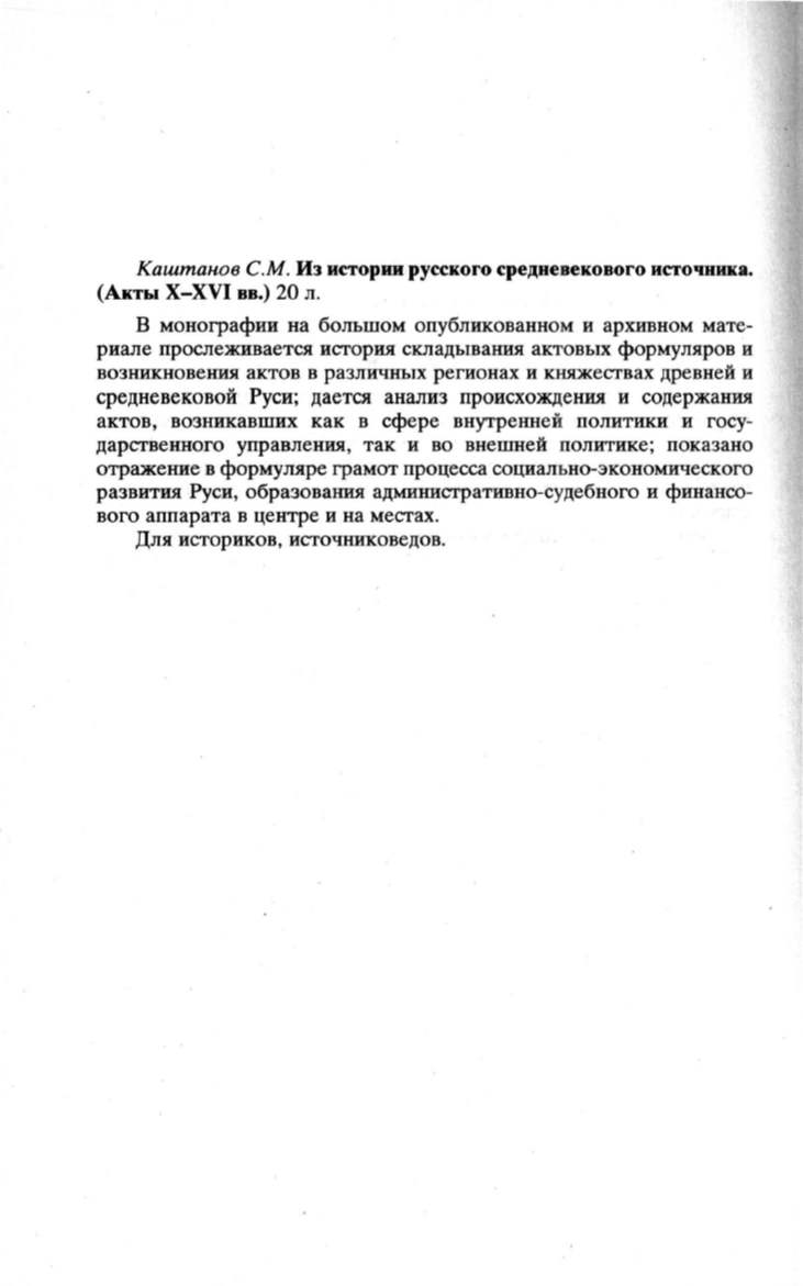Каштанов С.М. Из истории русского средневекового источника.