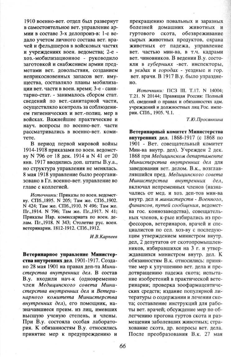 вет. чиновников. В ведении В.у. состо