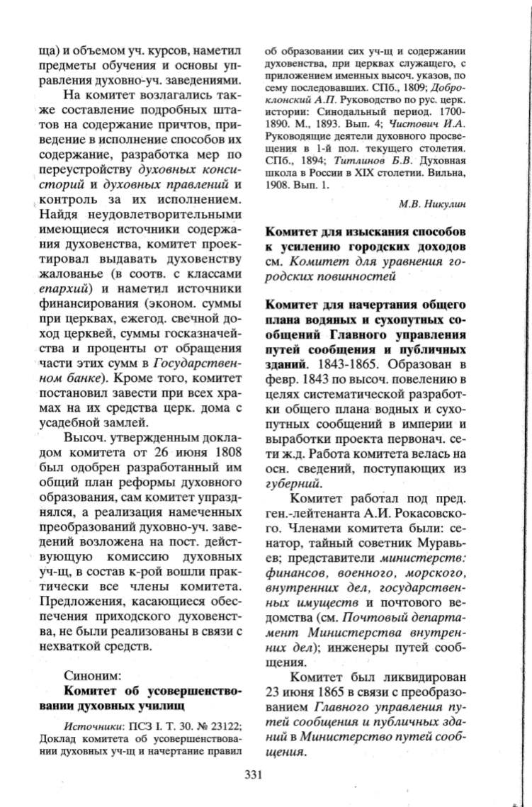 ния духовенства, комитет проек