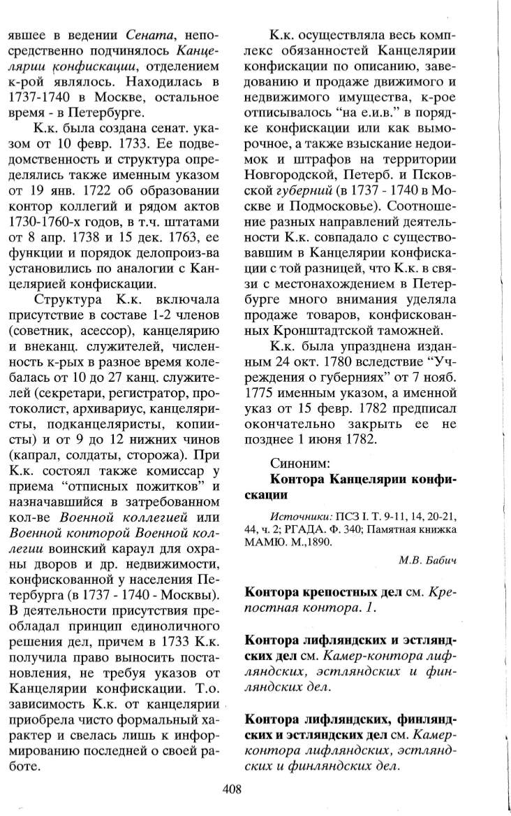 ских дел см. Камер-контора лиф