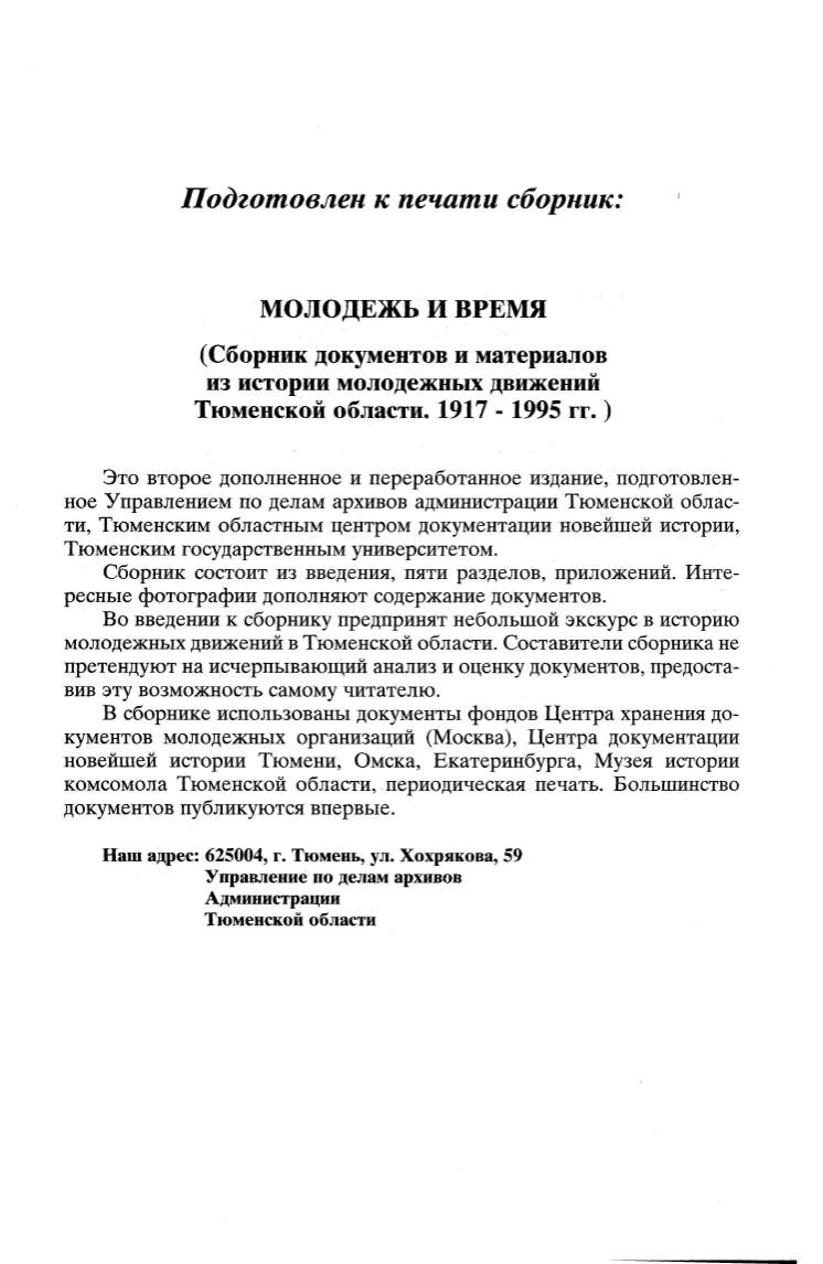 ти, Тюменским областным центром документации новейшей истории,