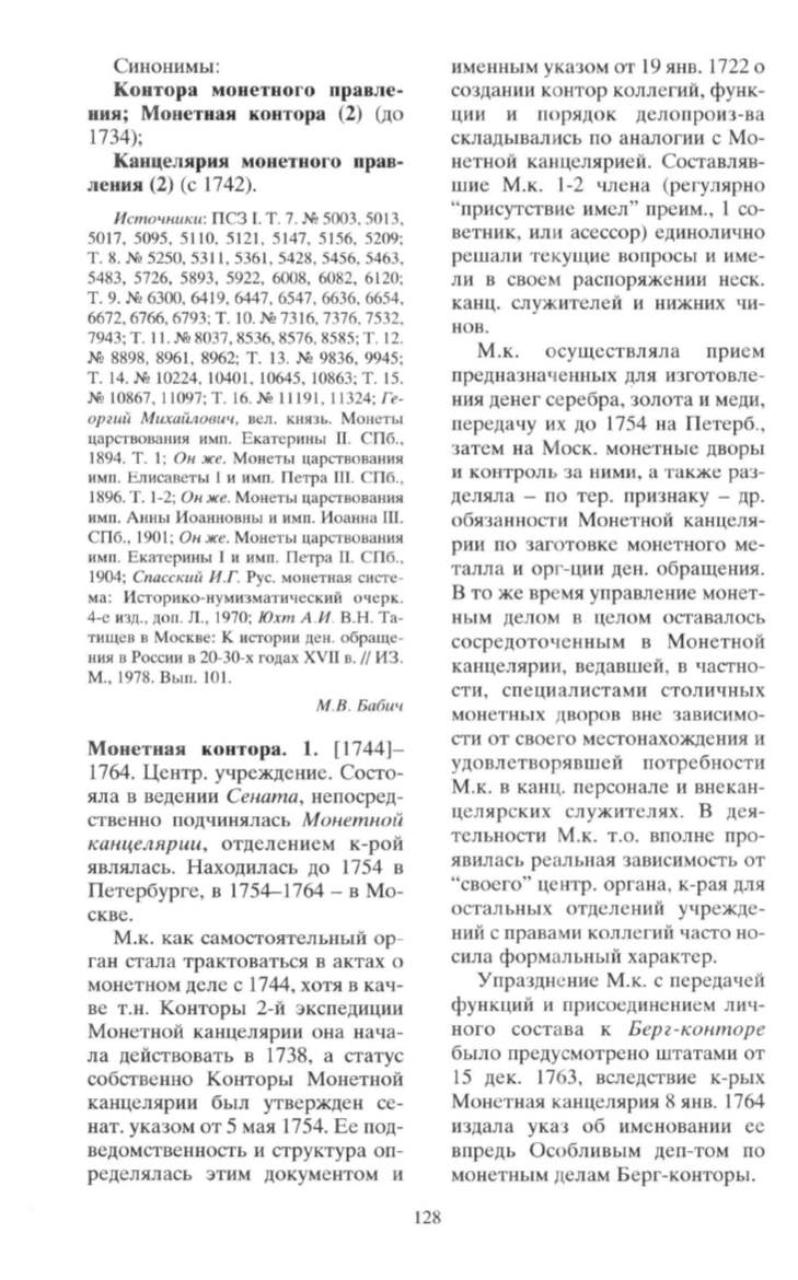 монетным делам Берг-конторы.
