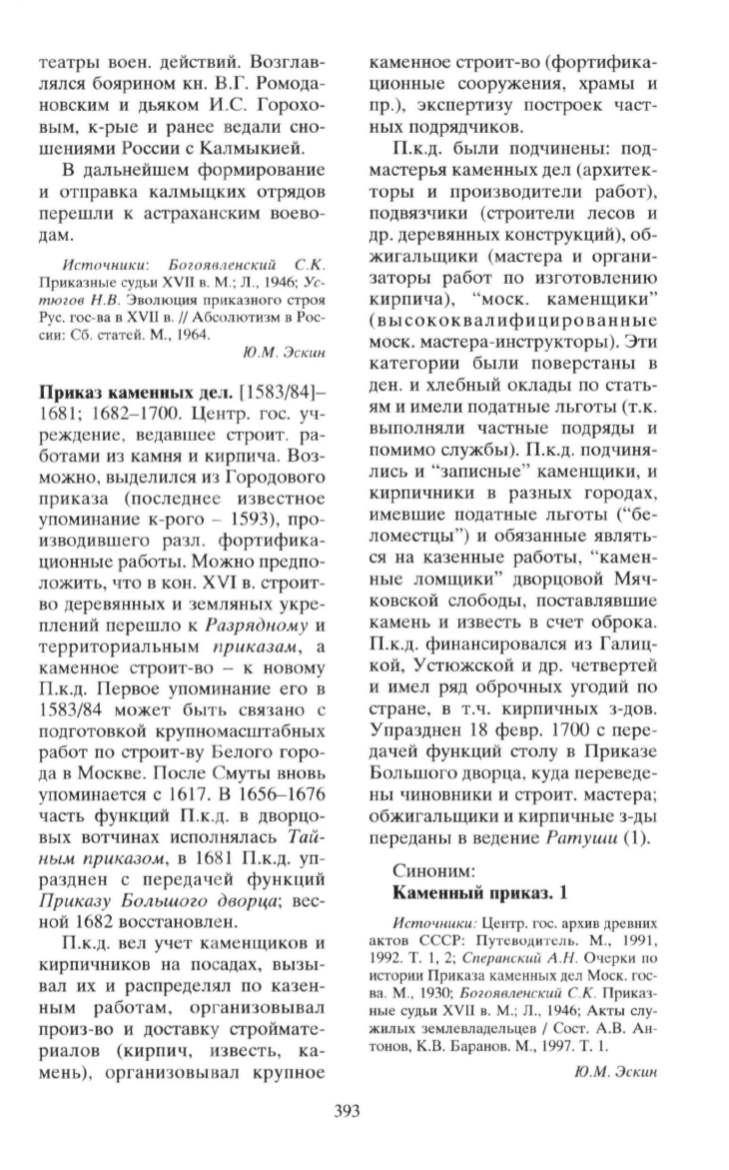 истории Приказа каменных дел Моек. гос