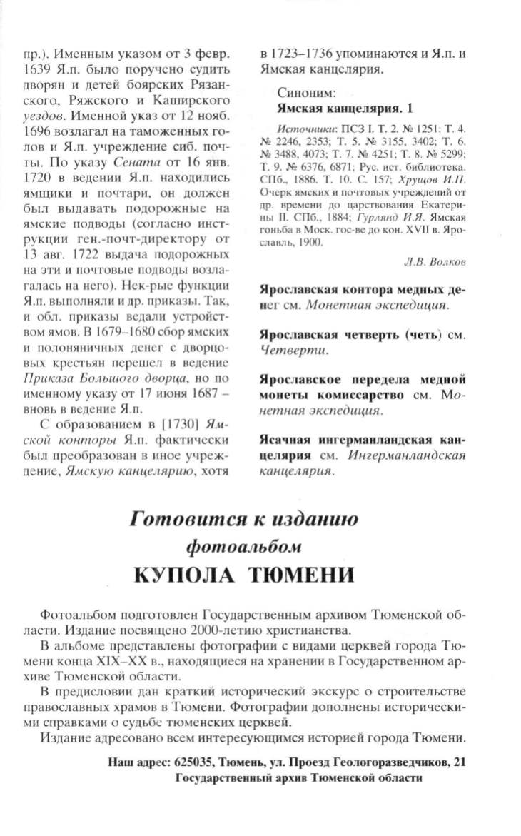 дение, Ямскую канцелярию, хотя