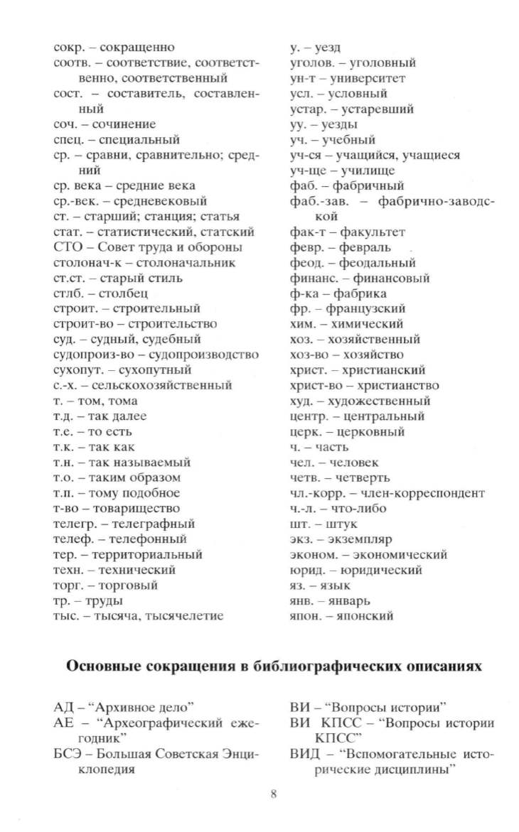 Основные сокращения в библиографических описаниях