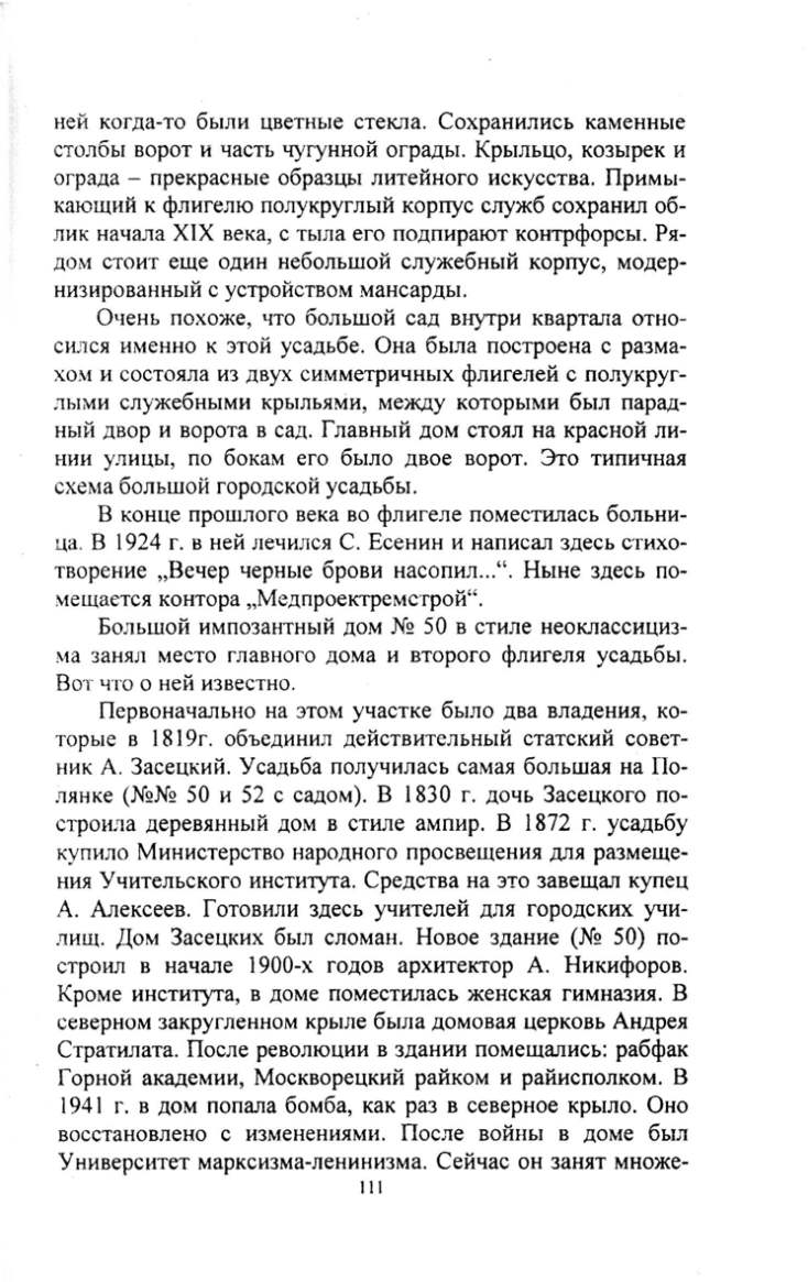 лищ . Дом Засецких был сломан .