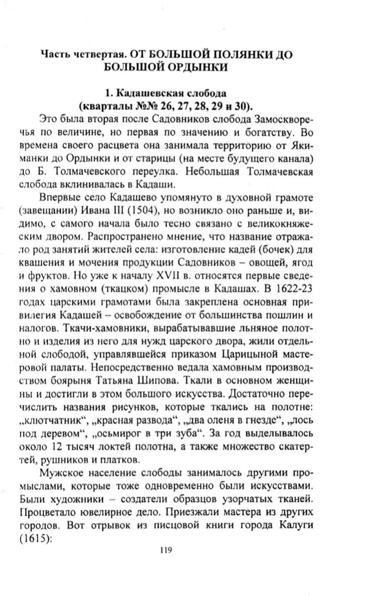 ния о хамовном (ткацком) промысле в Кадашах. В