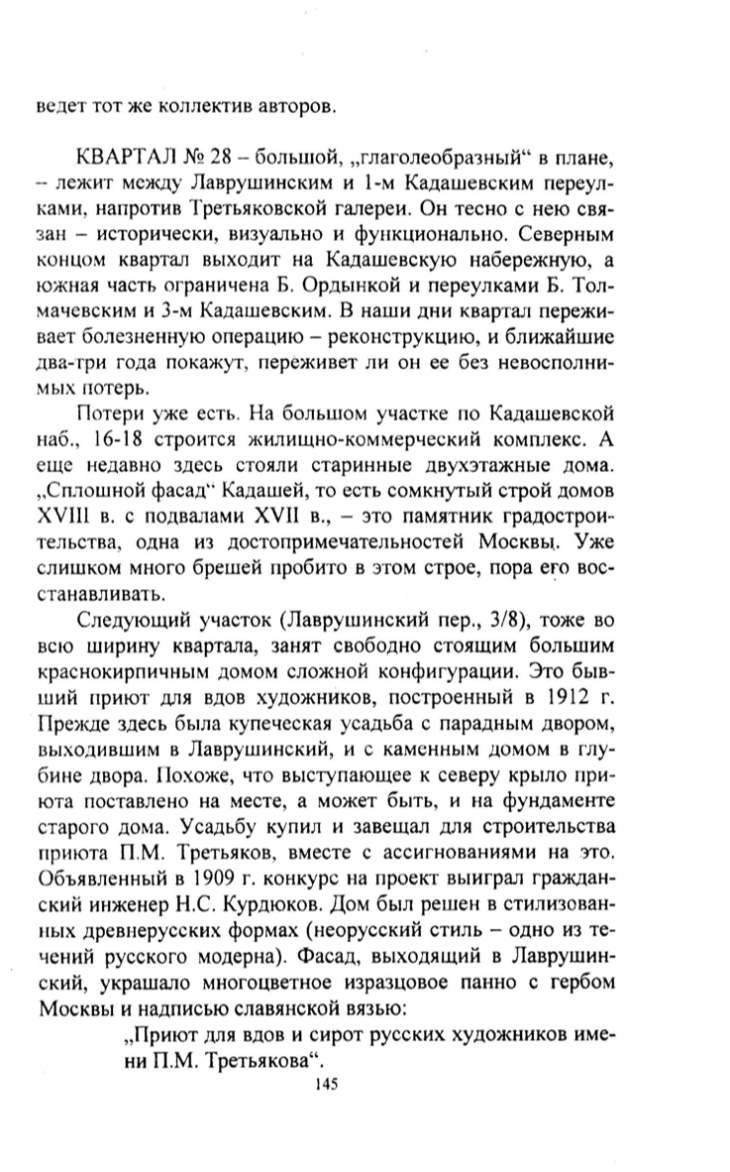 ками, напротив Третьяковекой галереи. Он тесно с нею свя