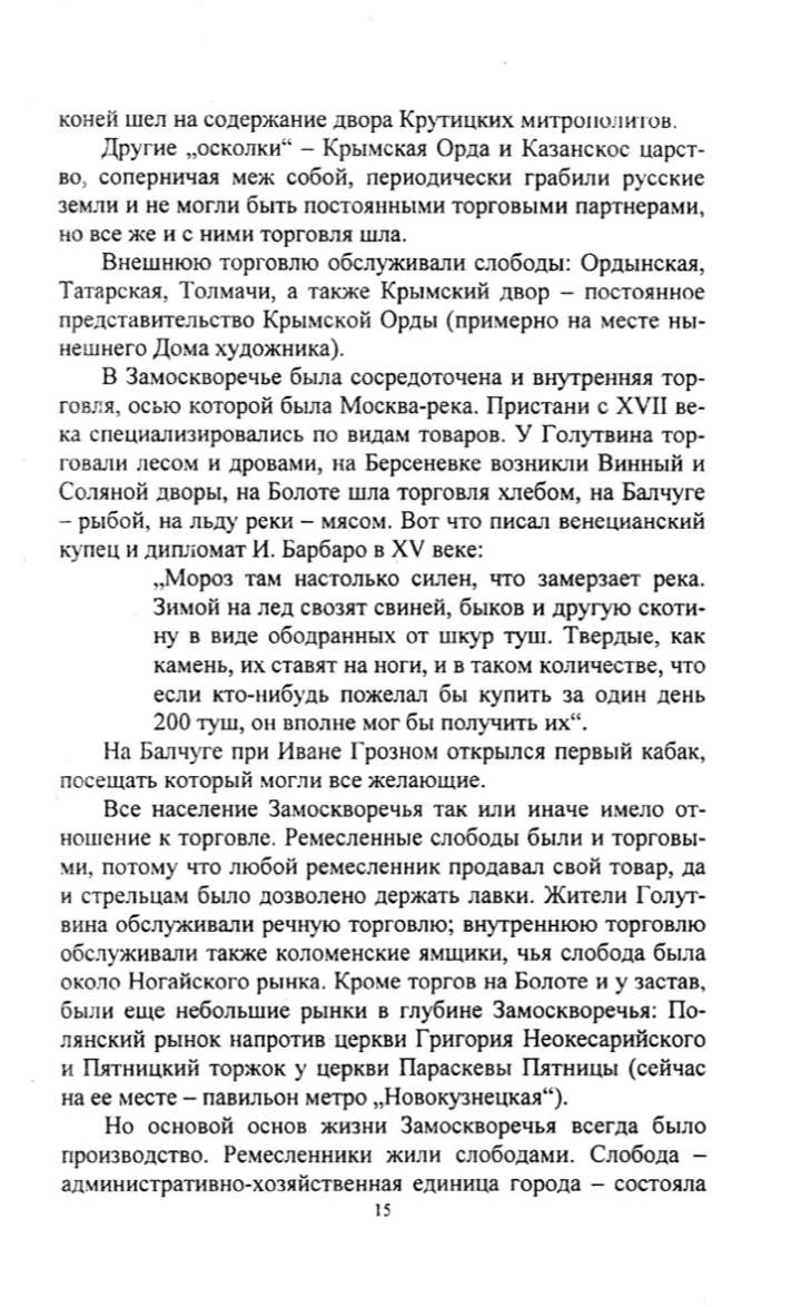 Соляной дворы, на Болоте шла торговля хлебом, на Балчуге