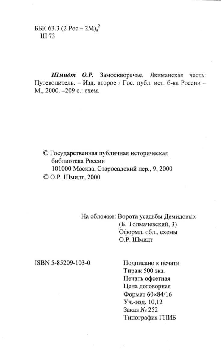 Шмидт О.Р. Замоскворечье. Якимаиекая часть :
