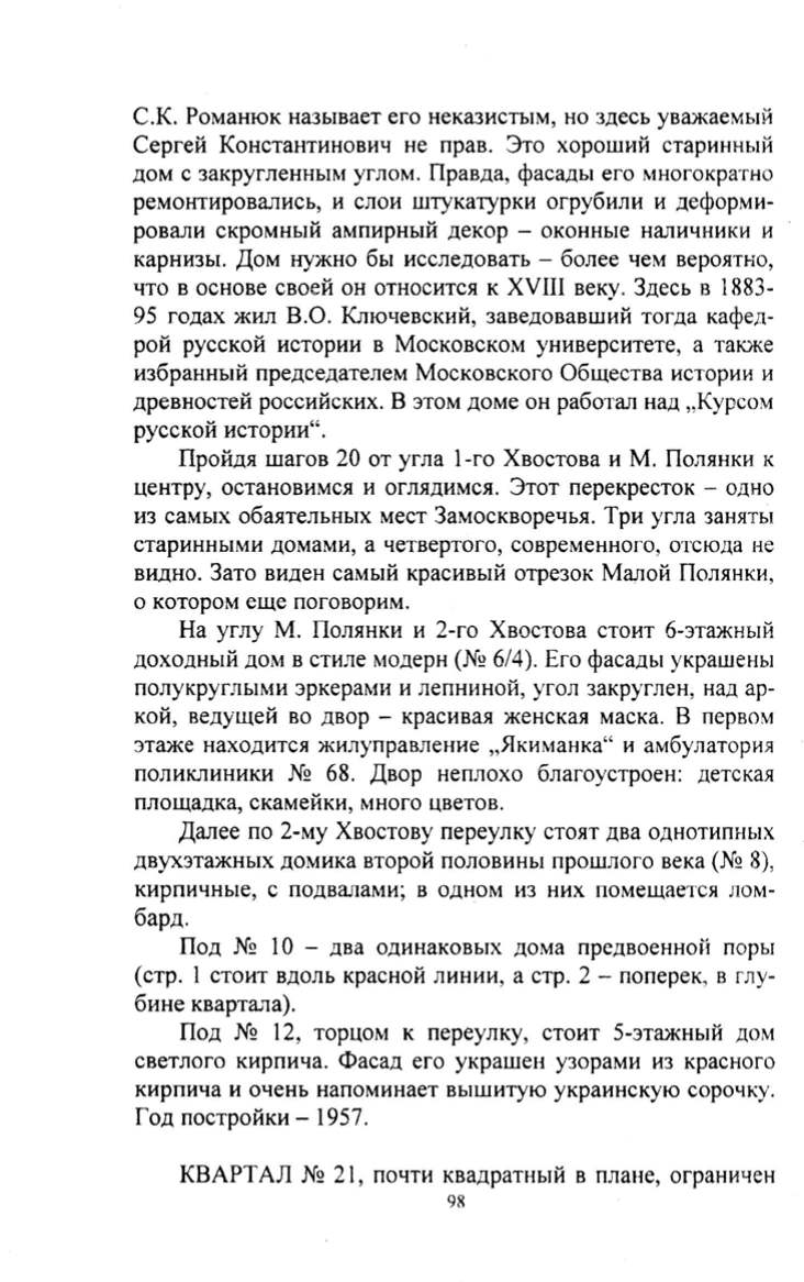 годах жил В.О. Ключевский, заведовавший тогда кафед