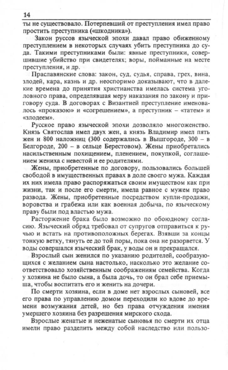 Русское право языческой эпохи дозволяло многоженство.