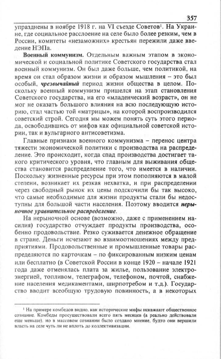 Военный коммунизм. Отдельным важным этапом в эконо