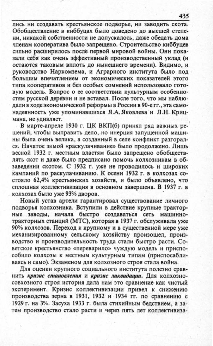 эксперимент. Кризис коллективизации привел к снижению