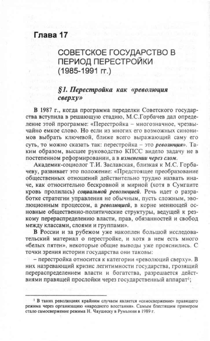 перестройка относится к категории «революций сверху» . В