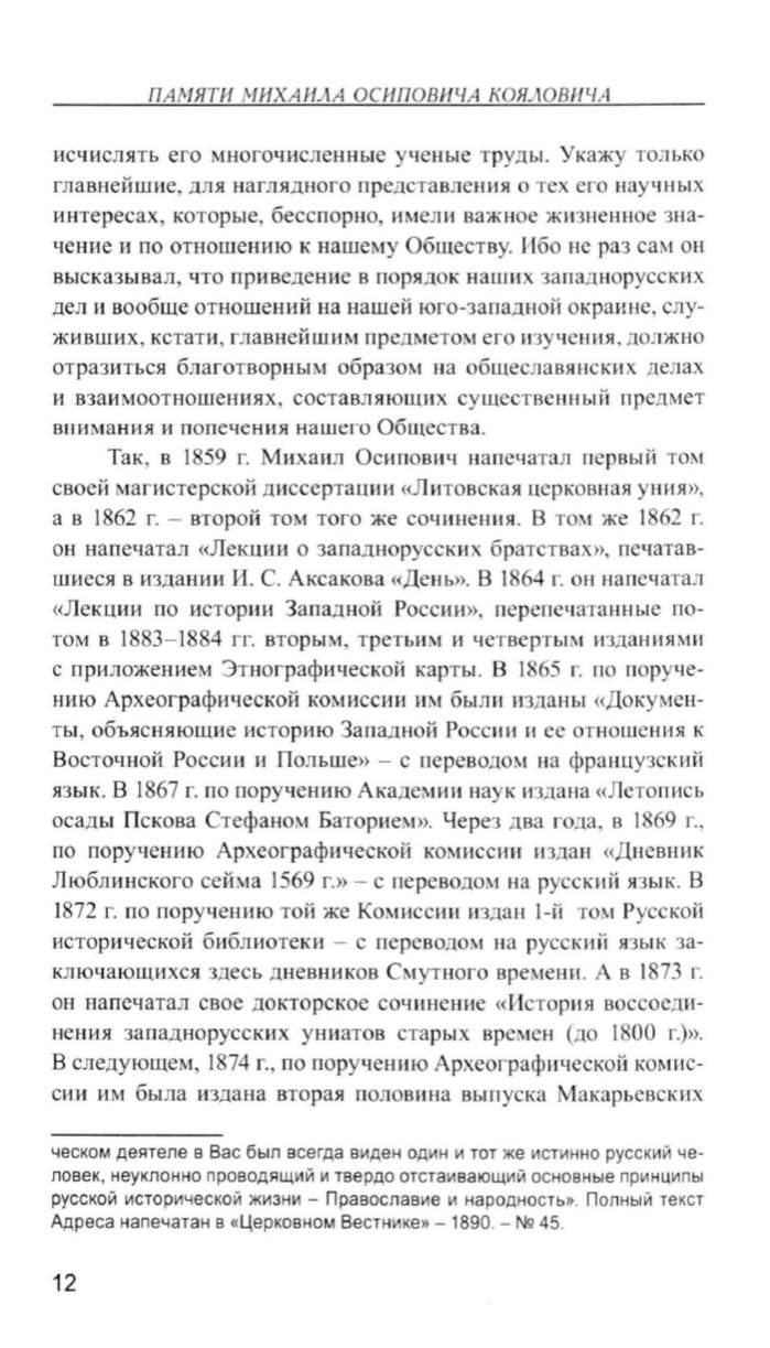 своей магистерской диссерта ции «Л и товека я церковная унию>,