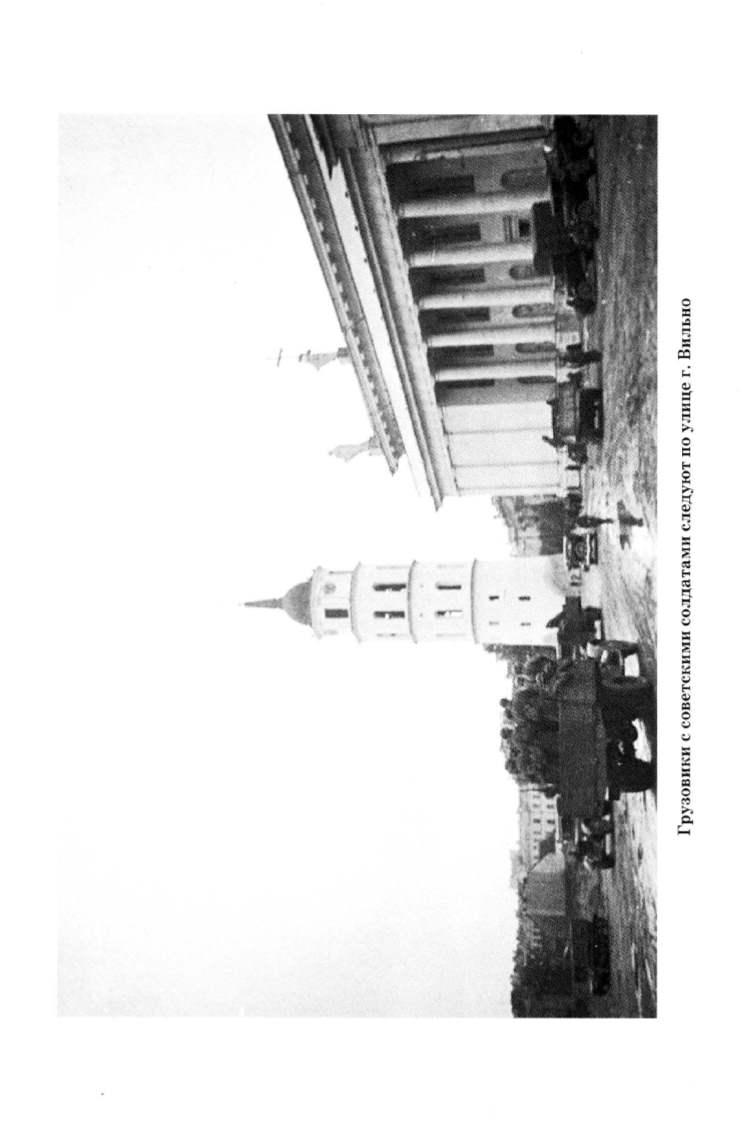 Грузовики с советскими солдатами следуют по улице г. Вильно