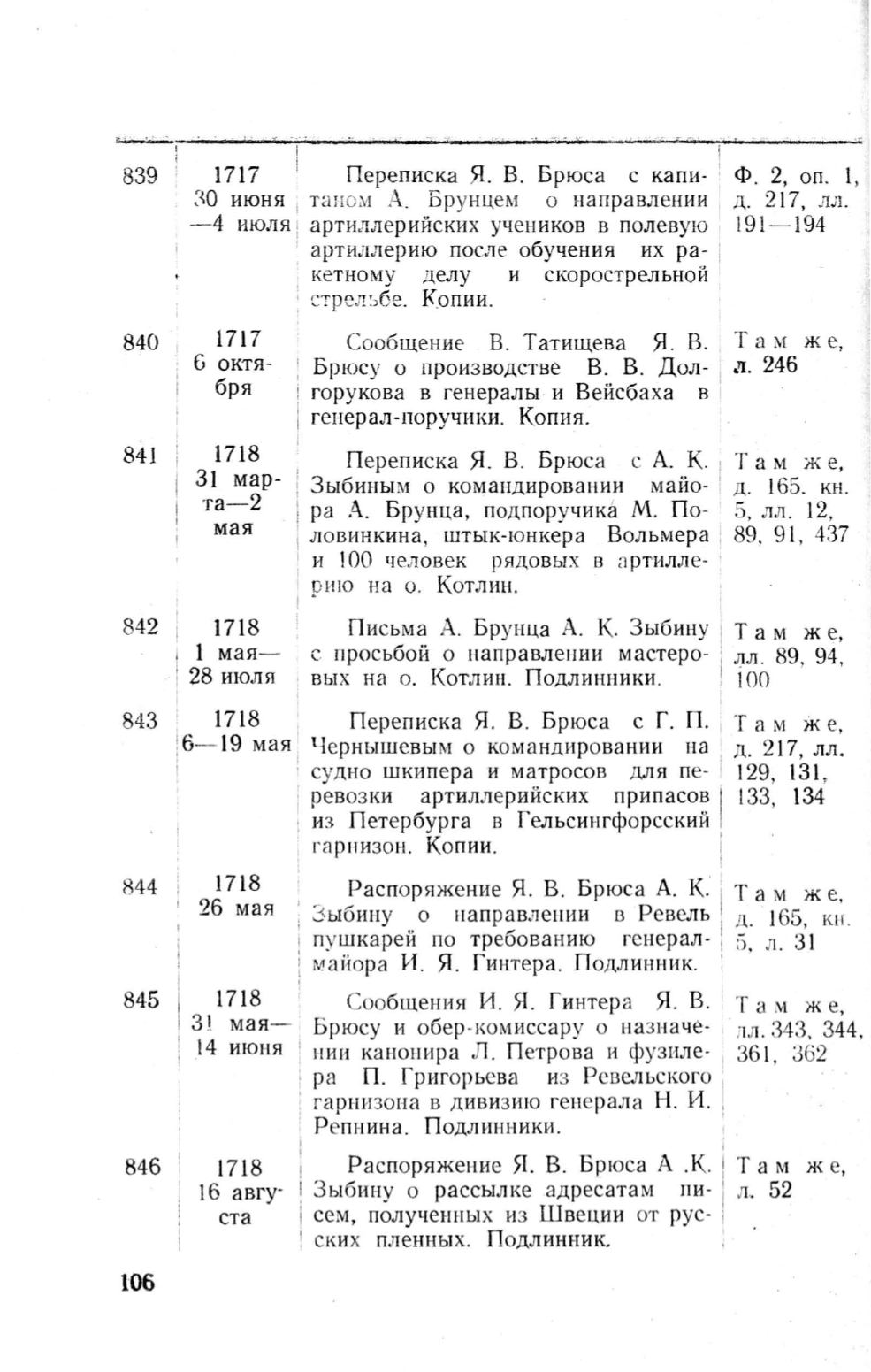 Распоряжение Я . В. Брюса А. К.