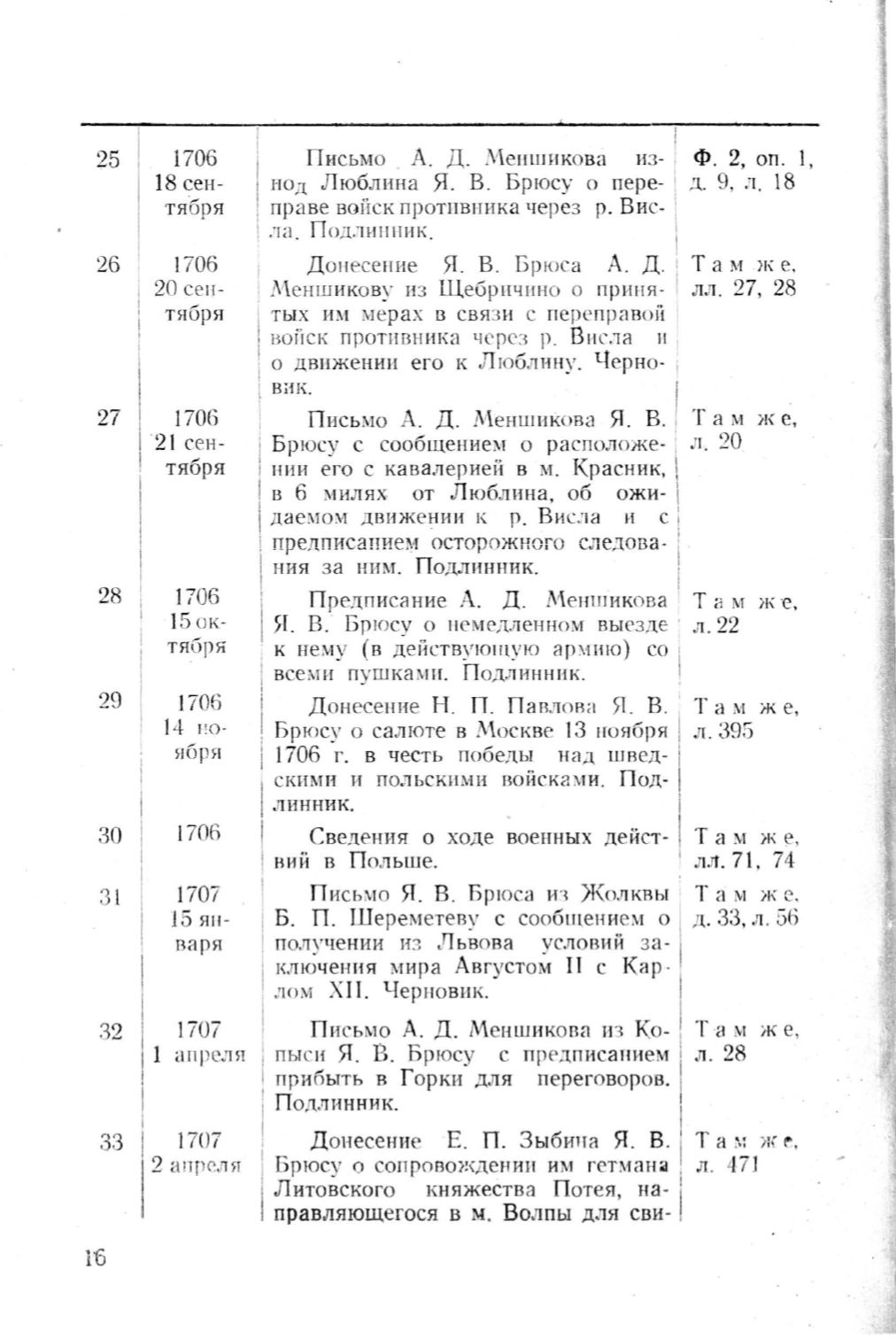 До н есе ни е Я. В. Брюса А. Д.
