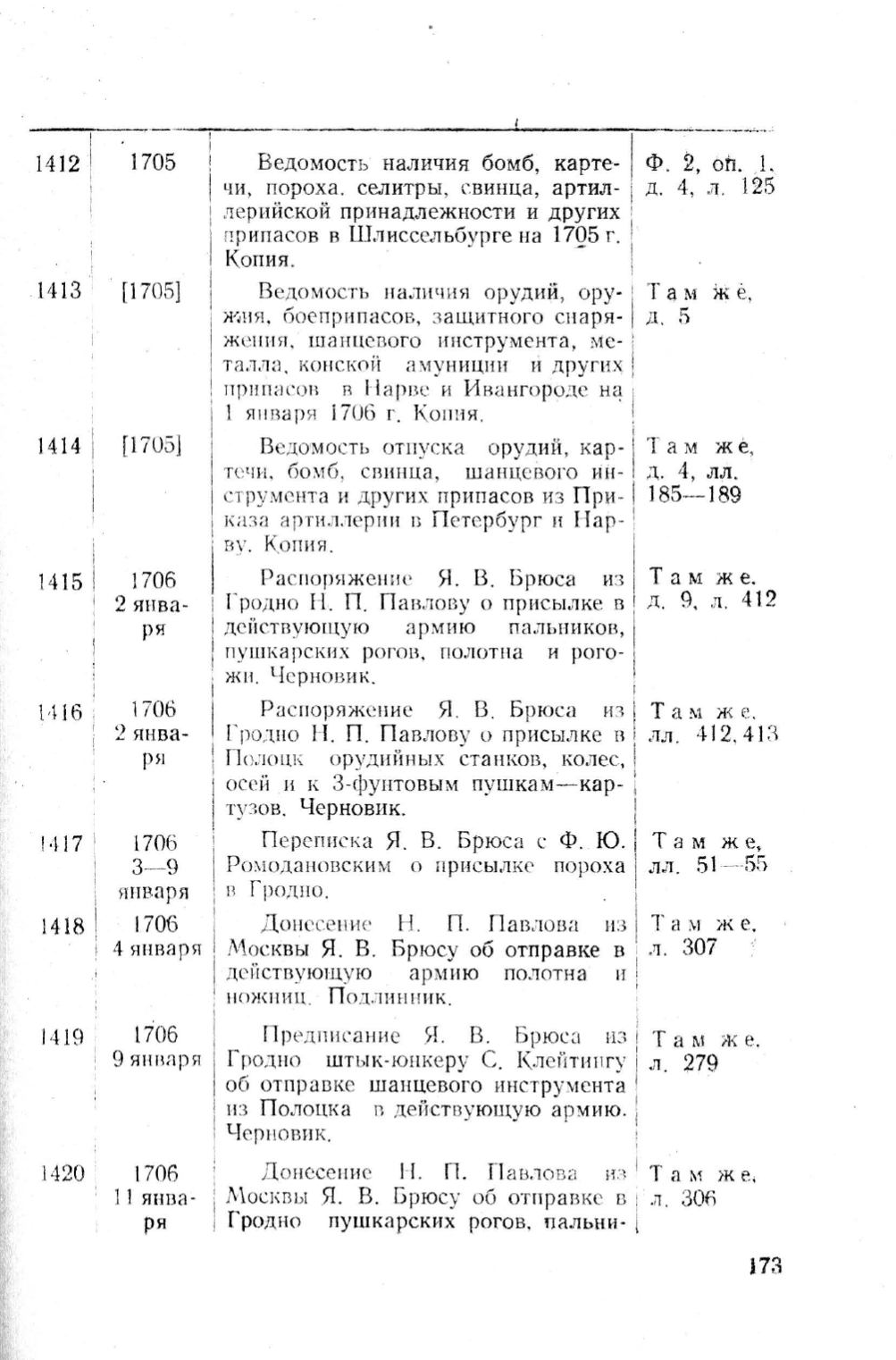Ра с п оряжен и е Я. В. Брюса н з