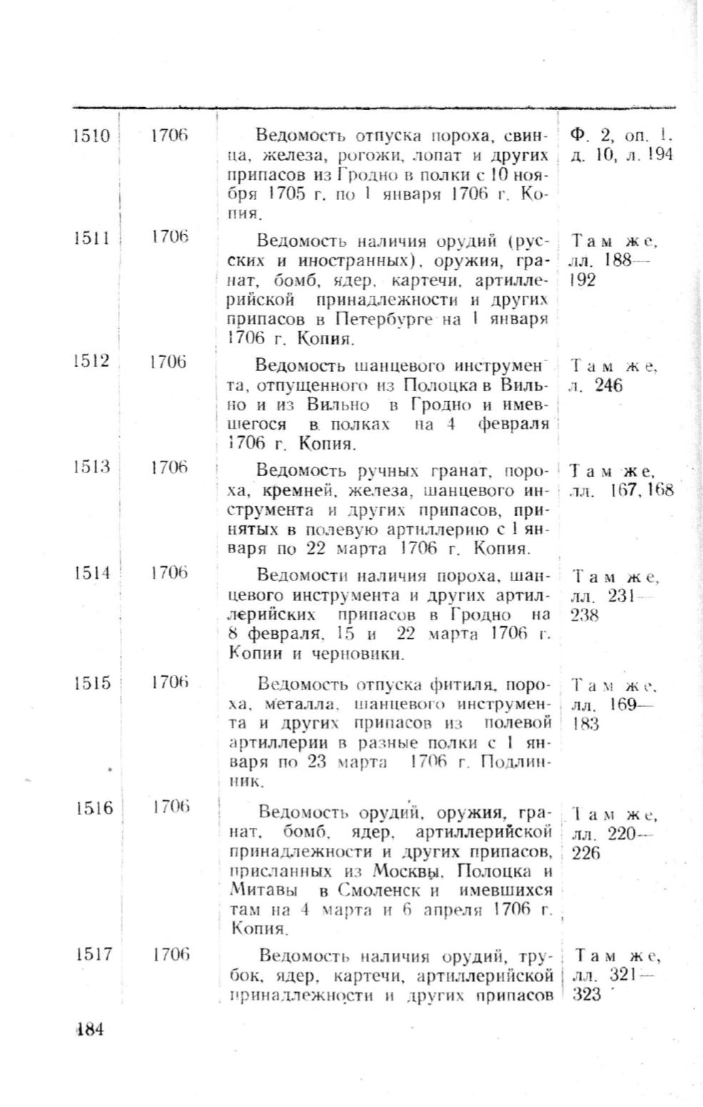Ведомост1, н аJiичи я орудий (рус - .