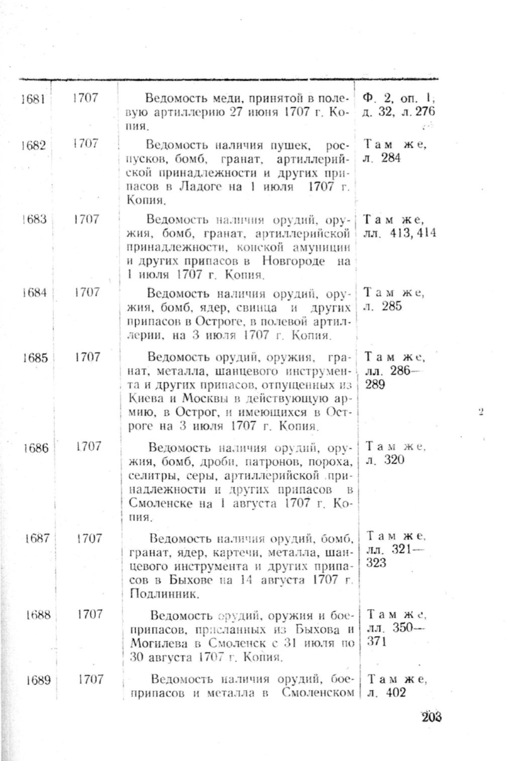 Ведомость нa .i!II'IIIH орудий. бомб,