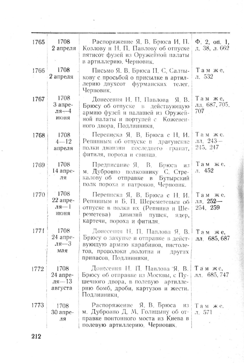 Распоряж е ни е Я. В. Брюса И. П. Ф.