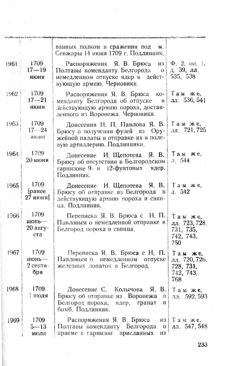 Распоряжения Я . В . Брюса н з