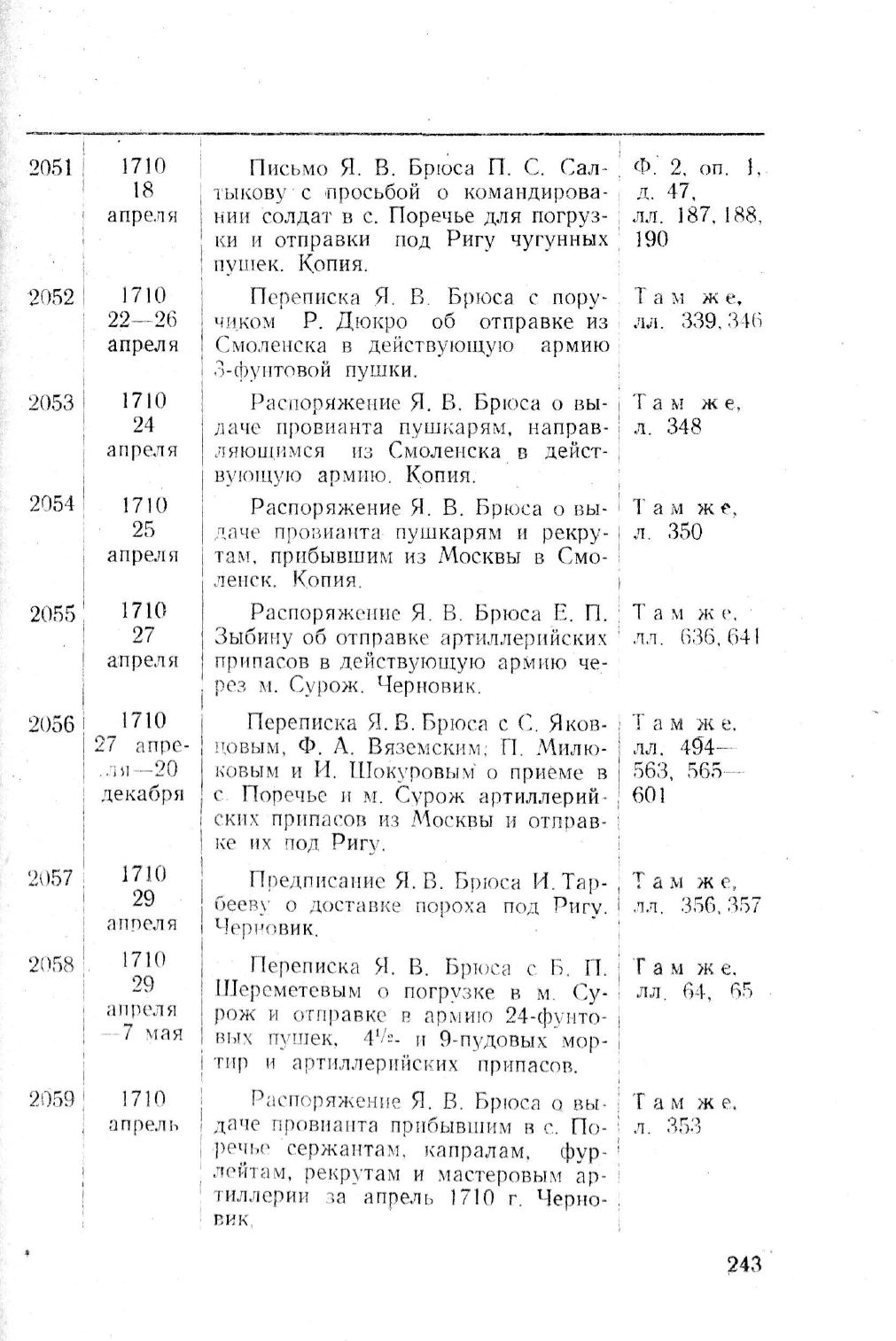 Распоряжение Я В. Брюса о вы-