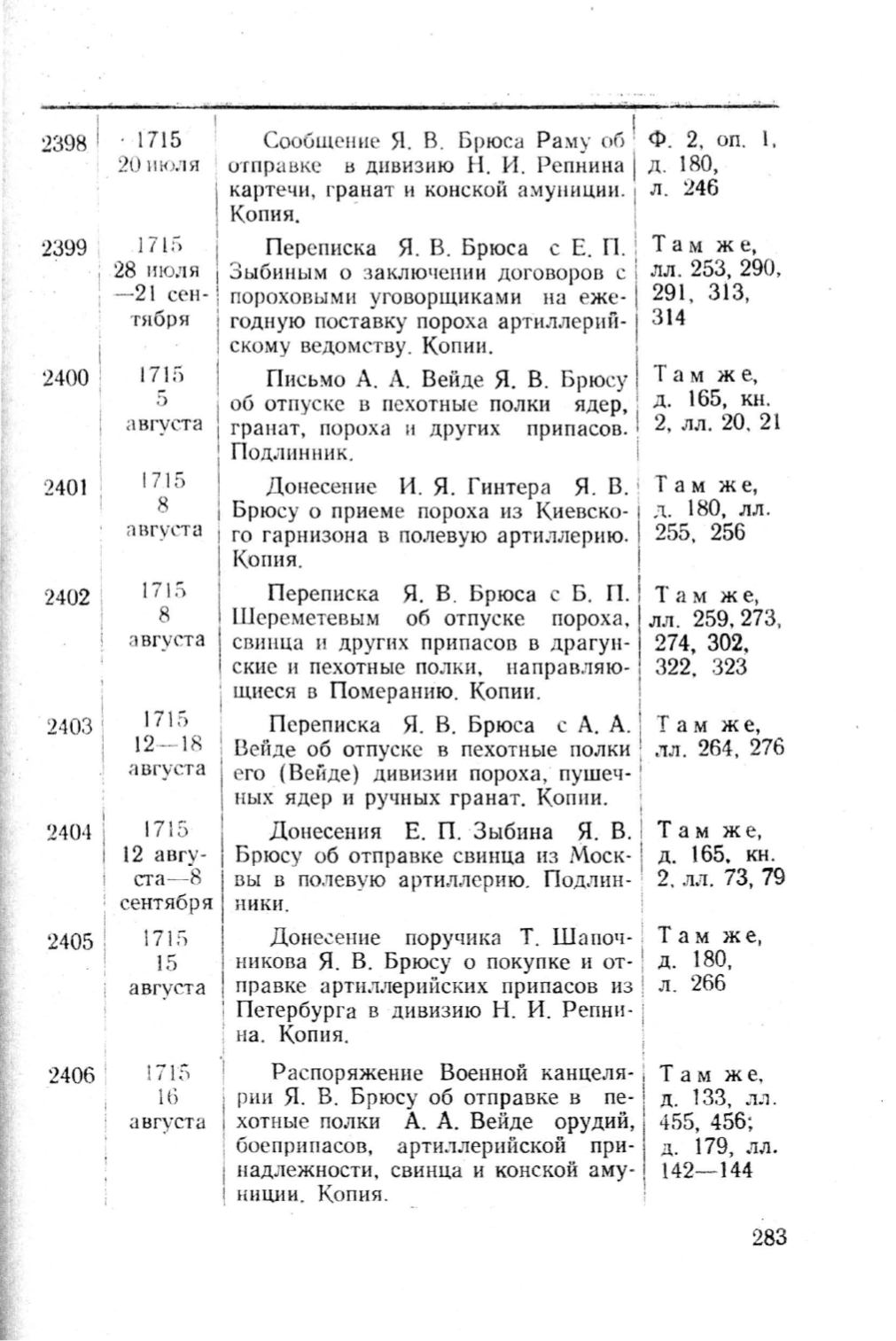 Письмо А. А. Вейде Я. В. Брюсу