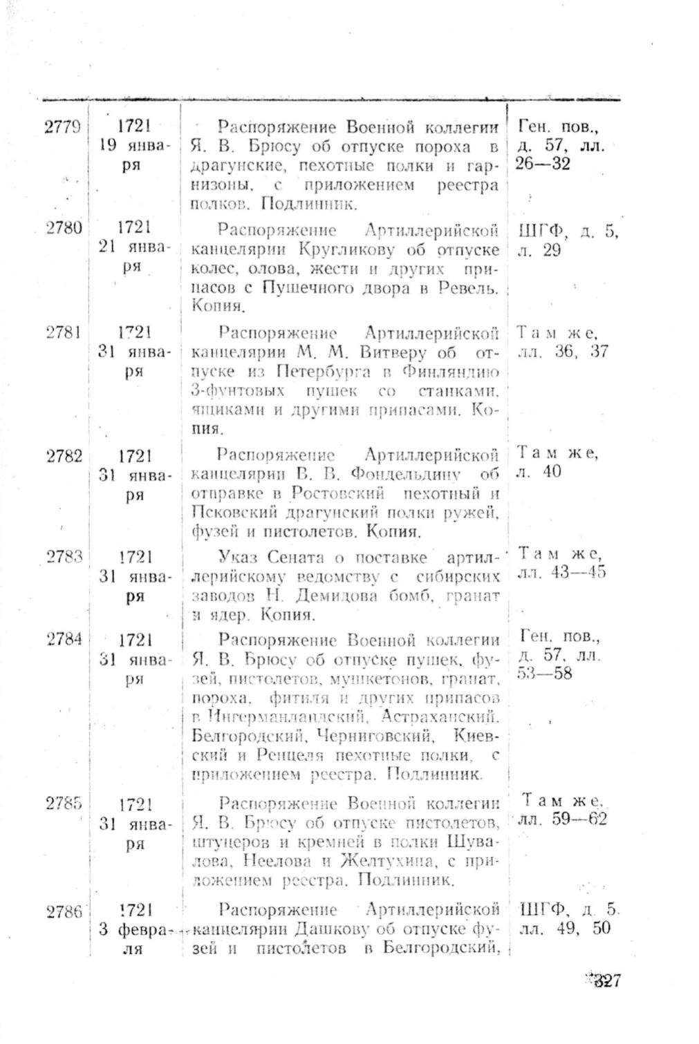 Я В. Брюсу об отп уске п ушек. фу-