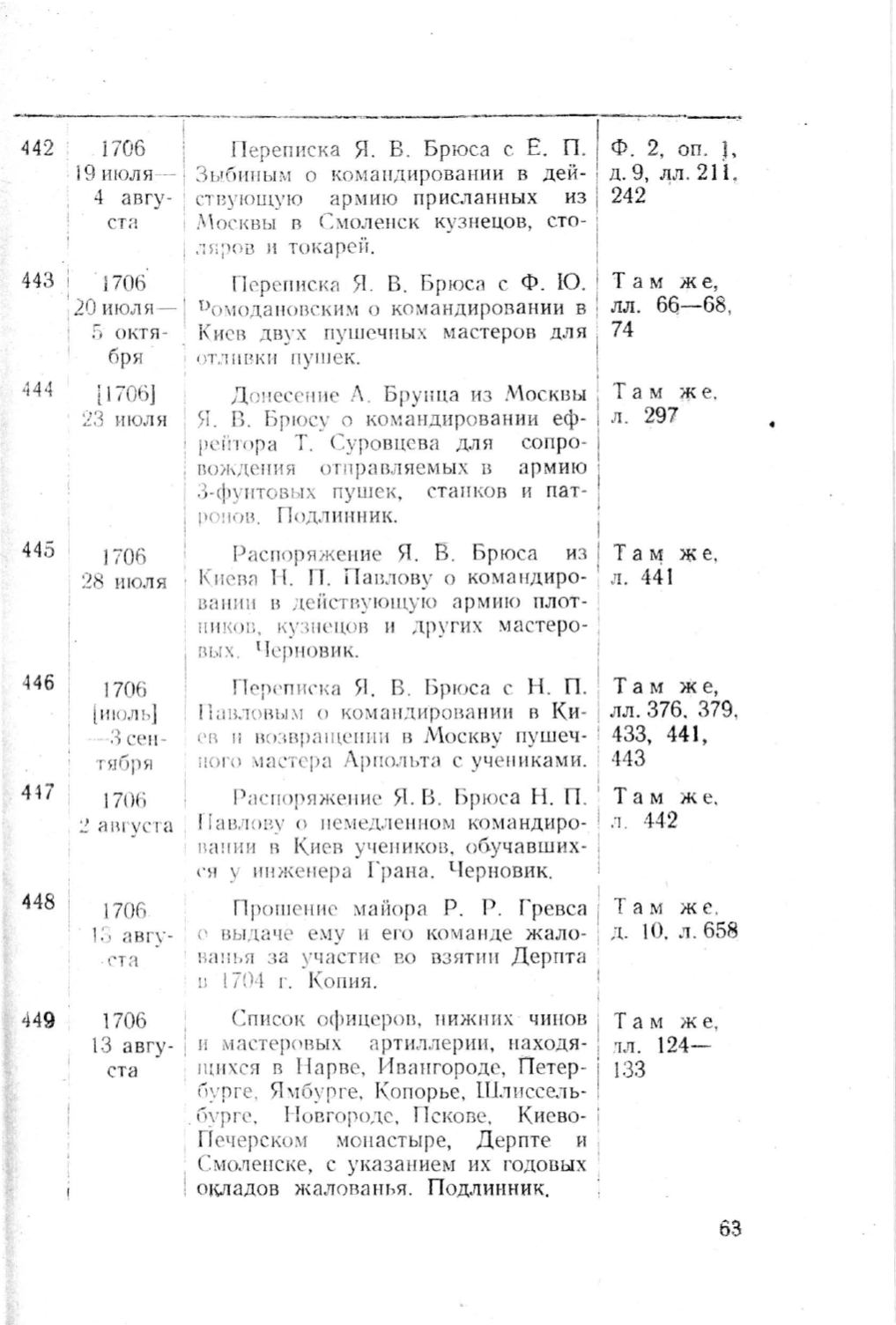 r ас поряжен ис Я. В . Бр юса Н. П .